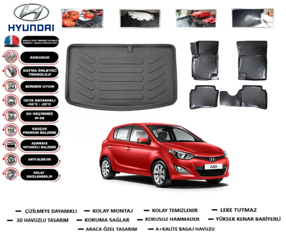 Hyundai İ20 2008-2014 3D Bagaj Havuzu+3D Araca Özel Paspas Takımı