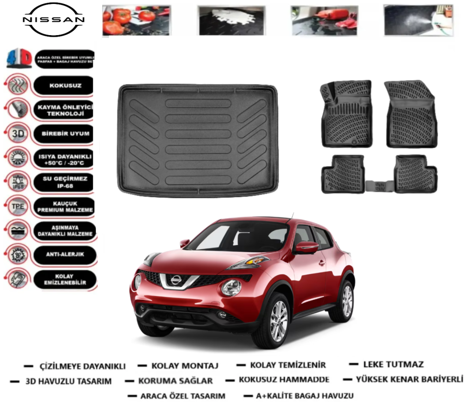 Nissan Juke 2016-2020 3D Üst Bagaj Havuzu+3D Araca Özel Paspas Takımı