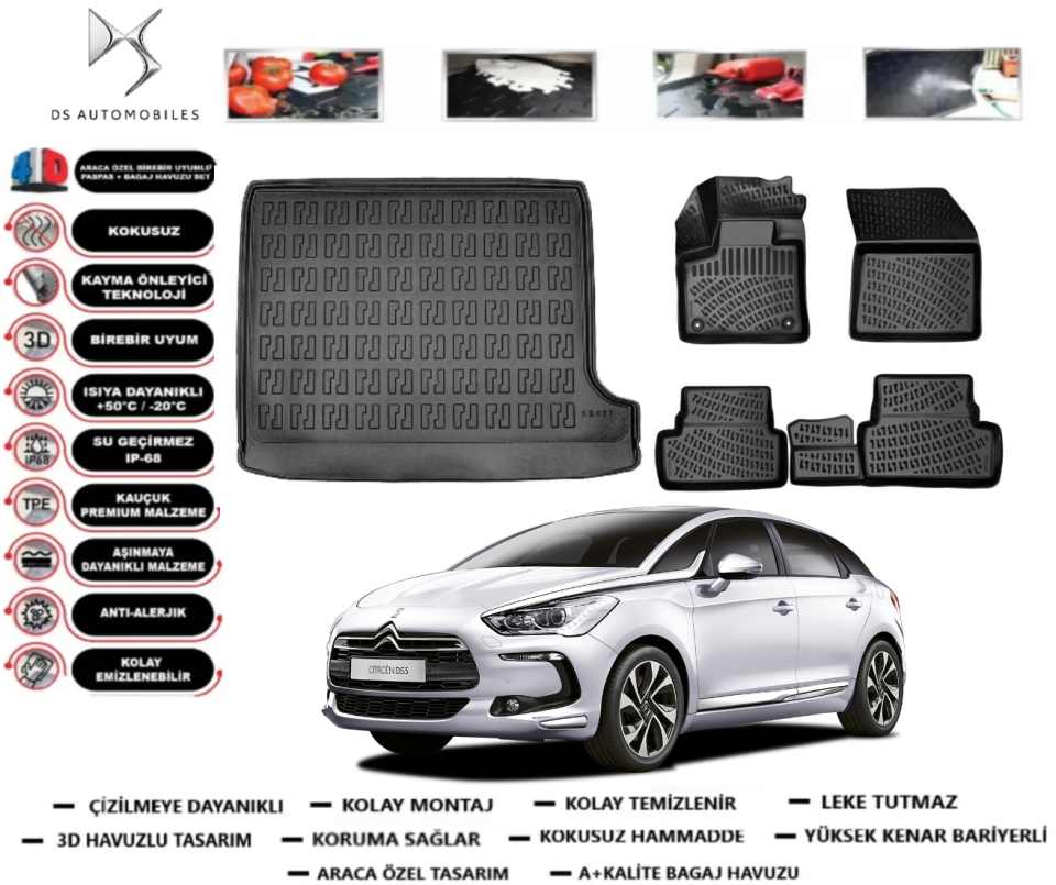 Ds 5 2011-2018 3D Üst Bagaj Havuzu+3D Araca Özel Paspas Takımı Luxury Serisi