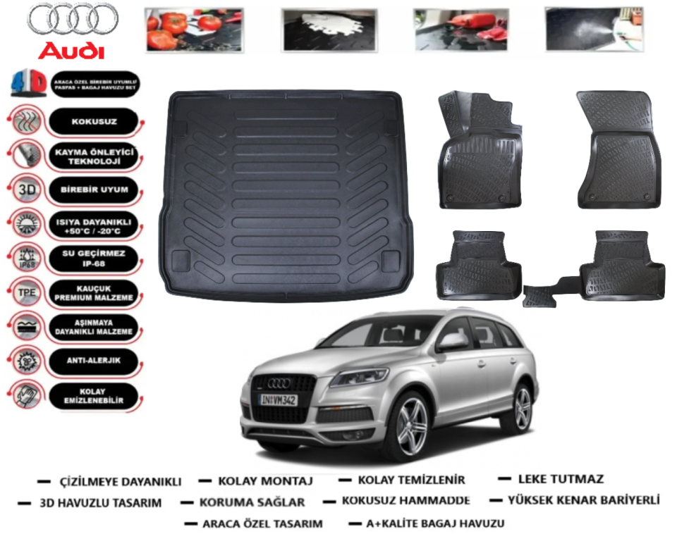 Audi Q7 2006-2015 3D Bagaj Havuzu+3D Araca Özel Paspas Takımı