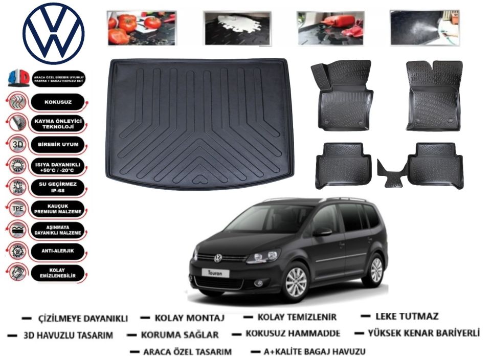Volkswagen Touran 2003-2015 3D Bagaj Havuzu+3D Araca Özel Paspas Takımı