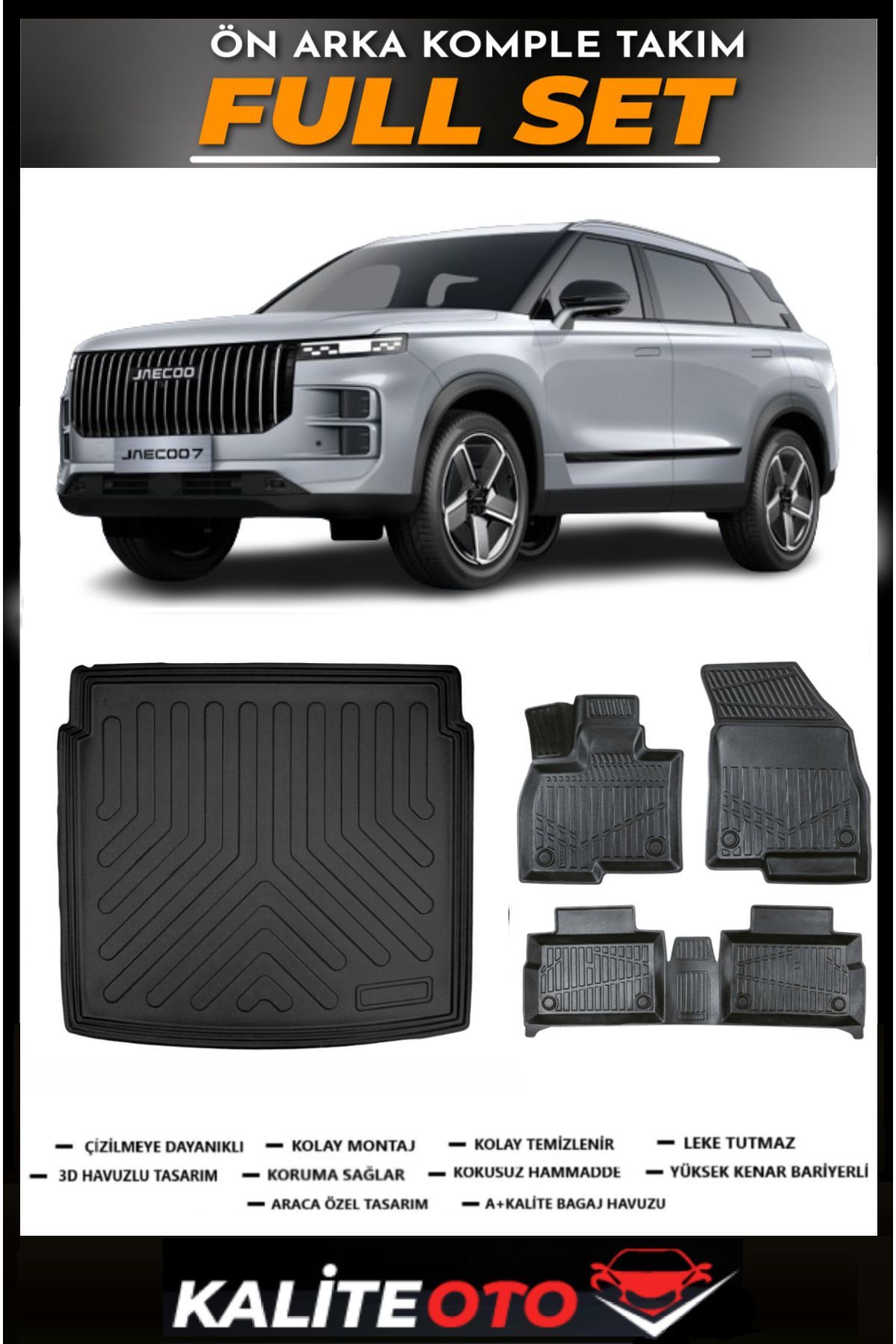Jaecoo J7 2024 Ve Sonrası İnce Stepneli Bagaj Havuzu+4.5D Havuzlu Paspas Seti