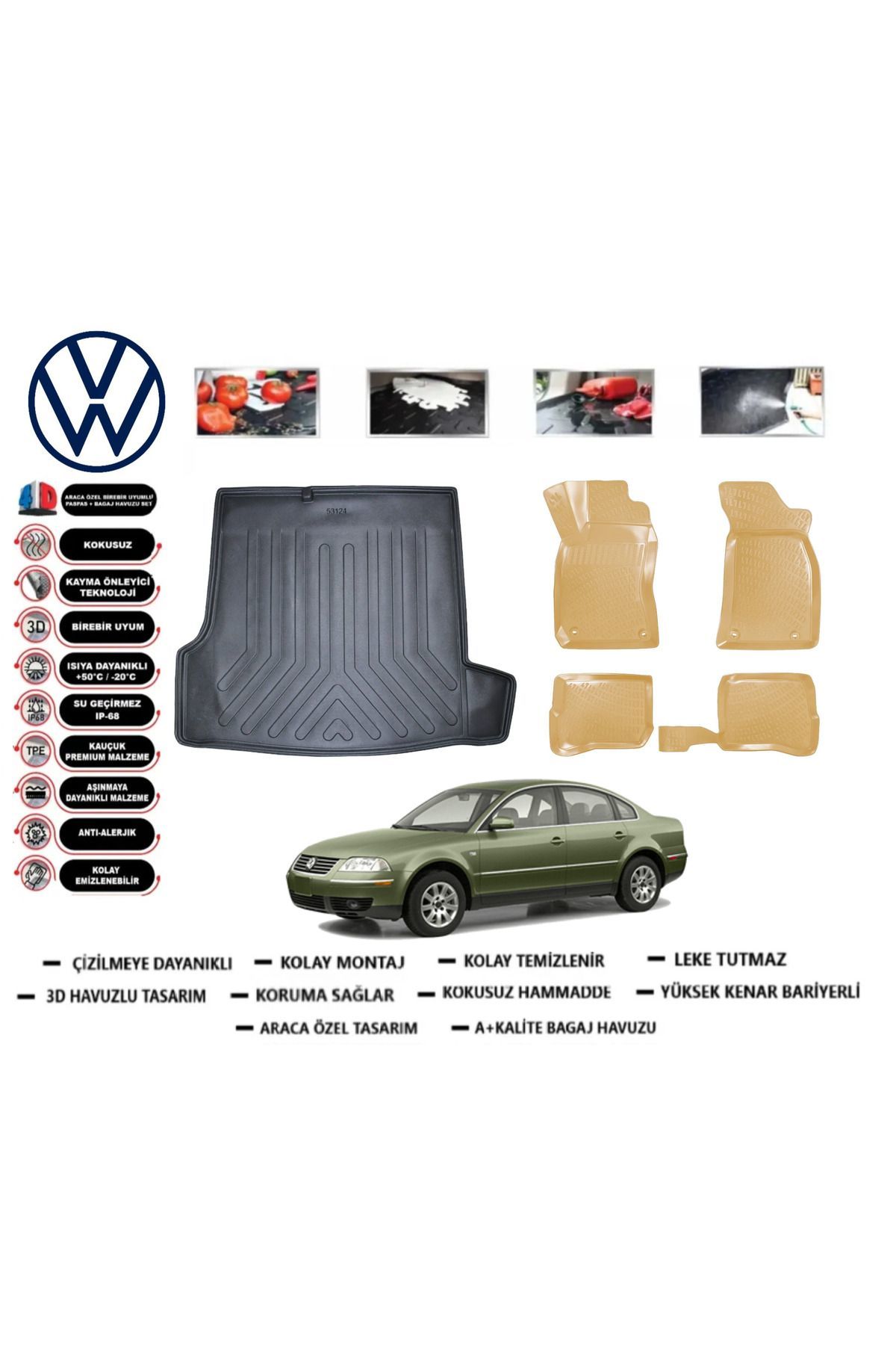Passat B5 1997-2005 Bagaj Havuzu+Araca Özel Bej Paspas Takımı